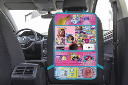 Univerzálny organizér zdobený motívmi obľúbených rozprávok, pasuje na väčšinu autosedačiek. Ľahko sa montuje s možnosťou nastavenia dĺžky upínacích popruhov. Organizér má veľa priestranných vreciek rôznych veľkostí na nápoje, hračky a iné drobnosti. Výrobok chráni stoličku pred nečistotami a ľahko sa čistí.
