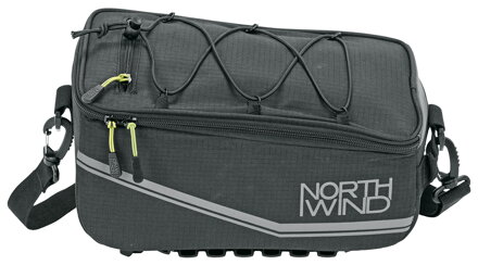 Taška s priestrannou hlavnou priehradkou. Úložné vrecko z elastickej sieťoviny umožňuje prevážať ďalšiu batožinu. Pláštenka udrží tašku aj jej obsah v suchu, zatiaľ čo reflexné prvky na vodoodpudivej nylonovej tkanine zabezpečujú viditeľnosť aj v tme.